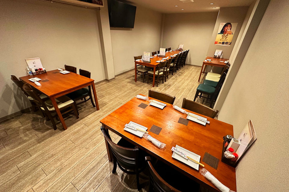 また、店の奥には四人掛けのテーブル席もありますので少人数のグループにも対応できます。